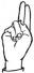 На ћирилици написано МИРЈАНА КОЈОВИЋ састоји се из 14 слова [?]. Исписано ћириличном једноручном азбуком за глувонеме: